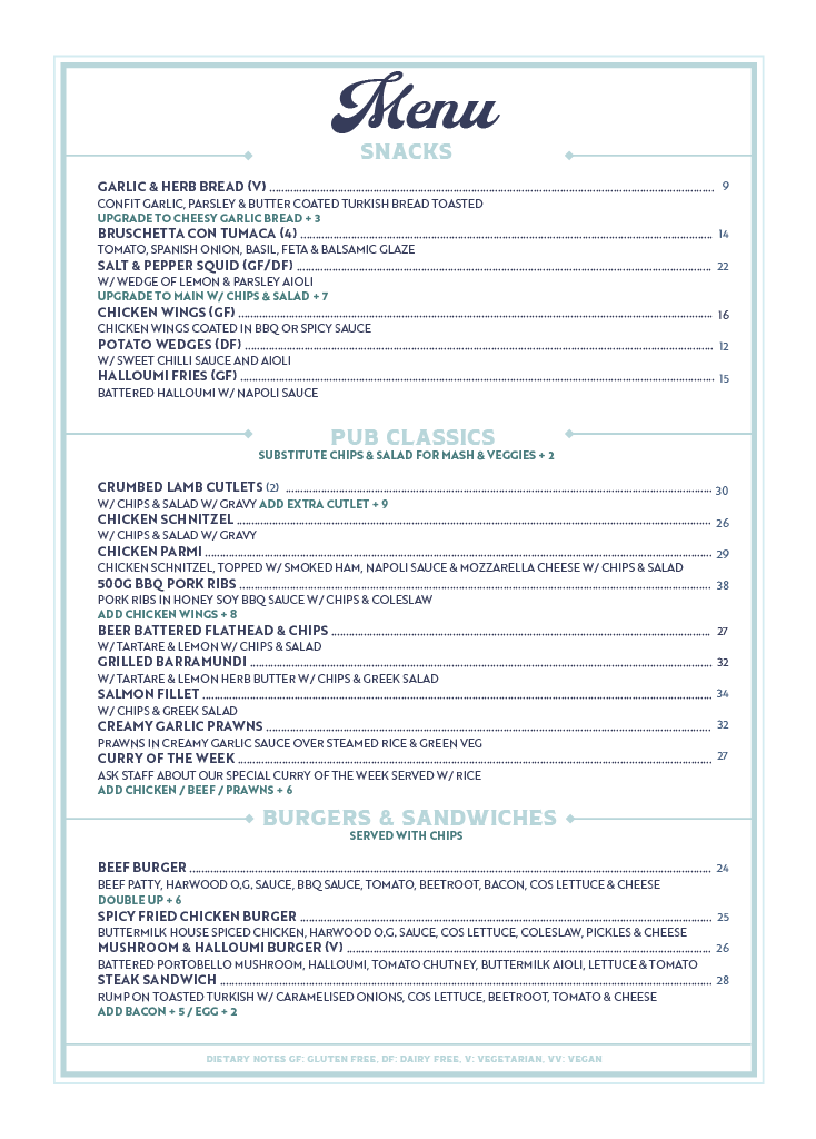 MENU View PDF Menu Function Menu Wine Menu PDF $15 Daily Specials $15 RUMP STEAK $15 CHICKEN SCHNITZEL $15 FISH & CHIPS